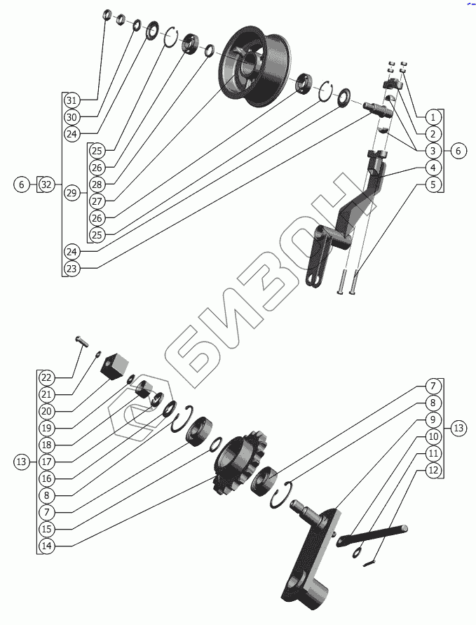 Графический каталог запасных частей к технике: РСМ-142 "Acros" вариант. Шкив натяжной. Натяжник