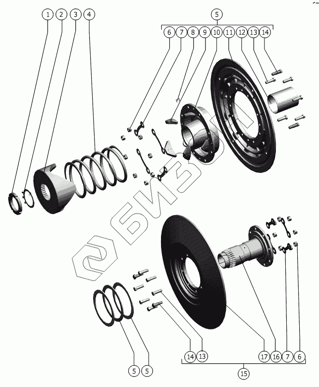 | 16 | РСМ-10.01.18.608В | Ступица или РСМ-10.01.18.340А |