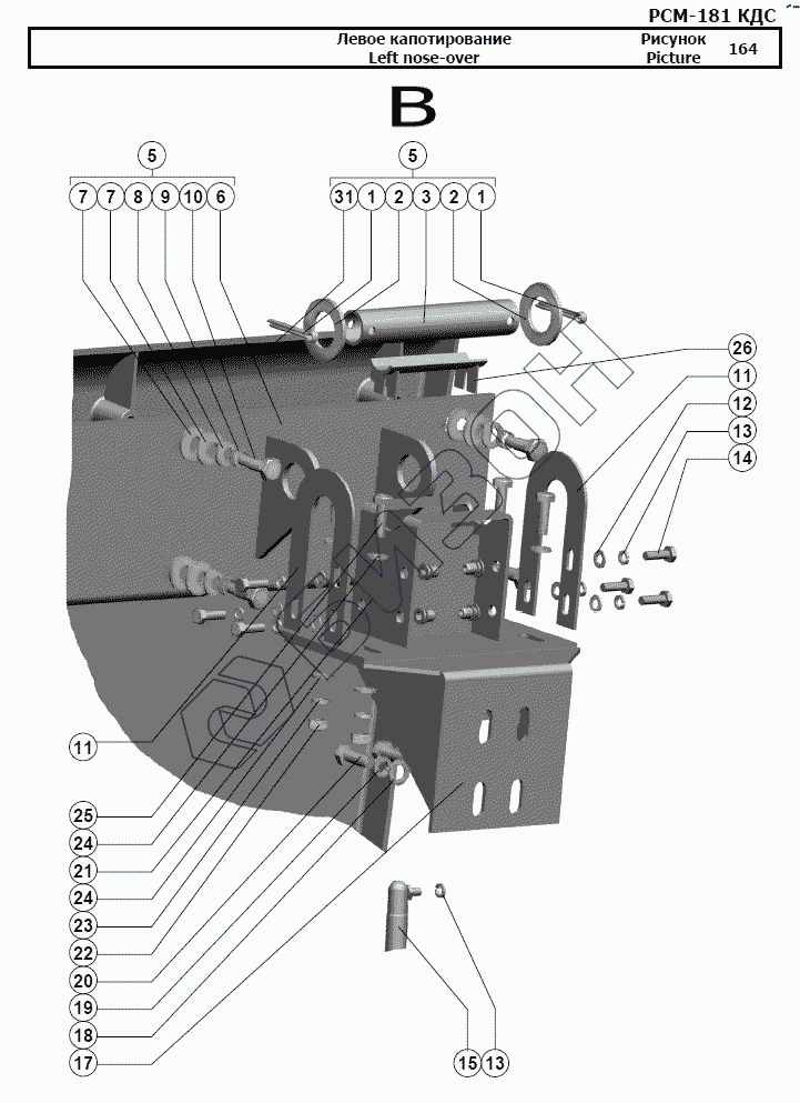 Графический каталог запасных частей к технике: РСМ-181 "Torum-740". Левое капотирование
