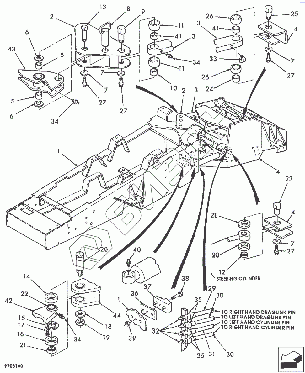 | 23 | 9705770 | Штырь - шарнир, цилиндр рулевого управления, задняя рама |