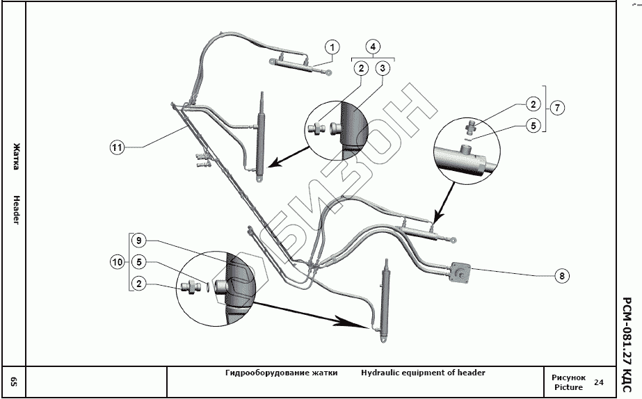 | 11 | 081.27.09.000 | Гидрооборудование жатки |