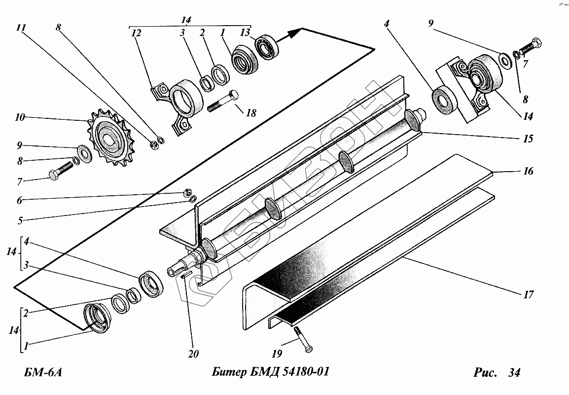 | 15 | БМД54190-01 | Вал битера |