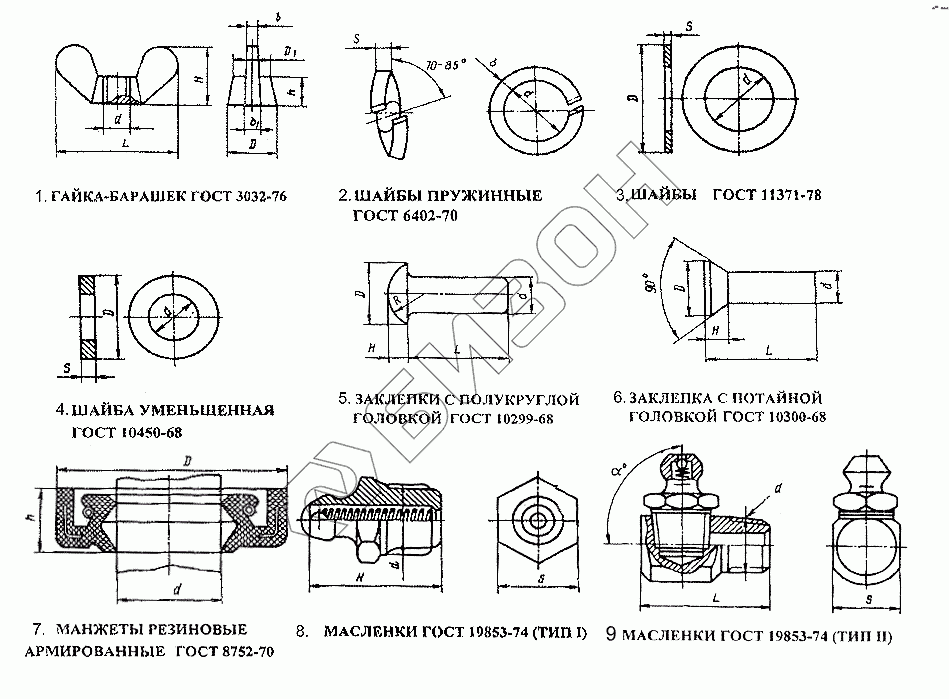 | 9 | 2,3.90.Ц6 | Масленка ГОСТ19853-74 (Тип 2) (d=К1/8, L=22, S=8, угол=90) |