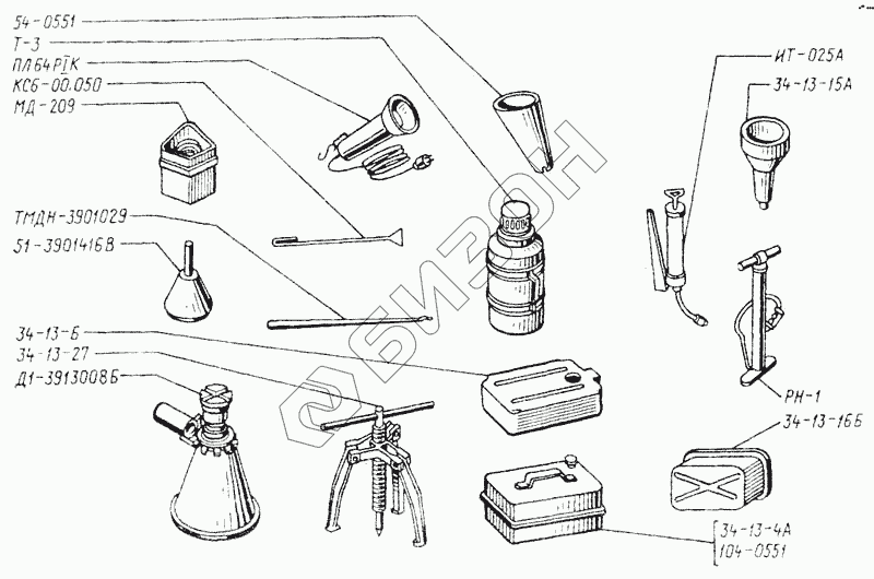 Графический каталог запасных частей к технике: ТКЗ КС-6Б. Комплект принадлежностей