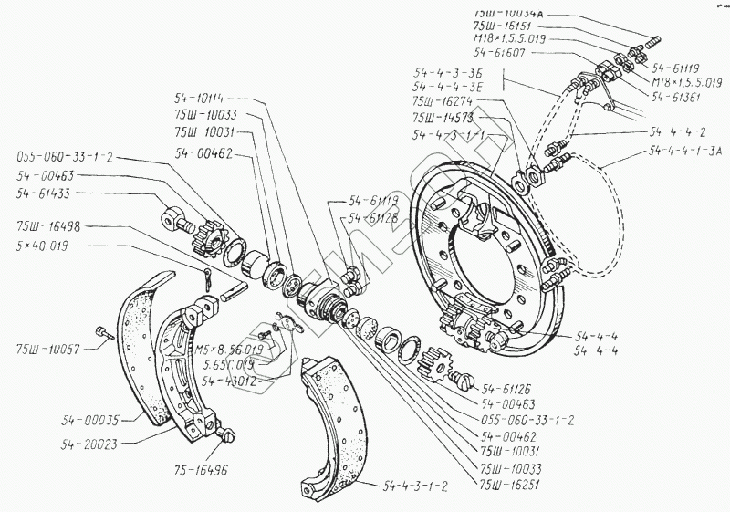 | 54-4-3-1-1 | 54-4-3-1-1 | Щит тормоза в сборе |