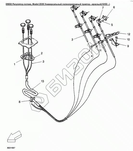 | 3 | 86012110 | Трос регулятора расхода жидкости распределителя |