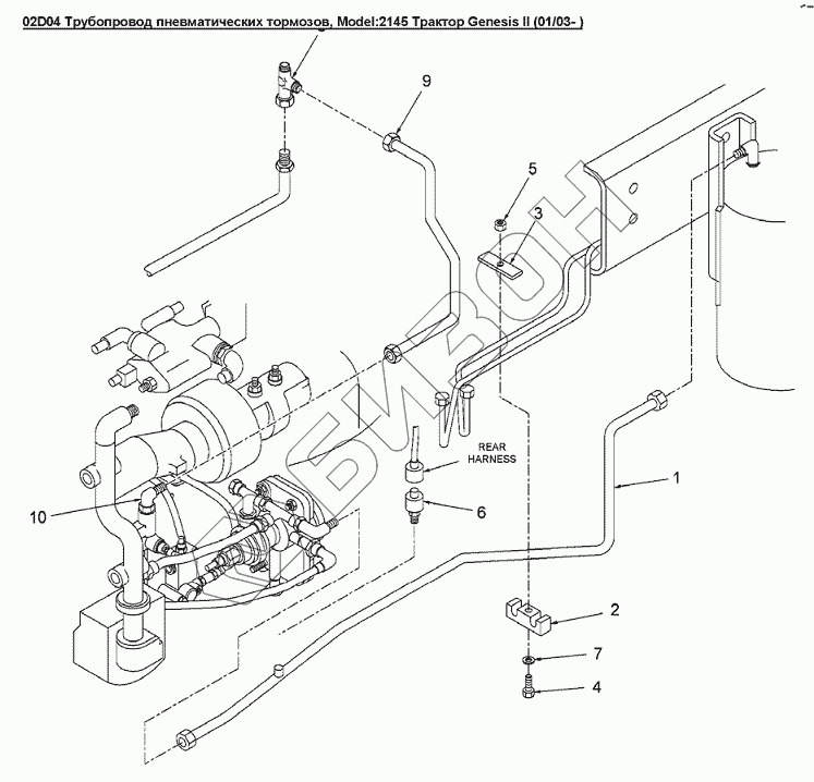 Графический каталог запасных частей к технике: Versatile серии GENESIS. 02D04 Трубопровод пневматических тормозов