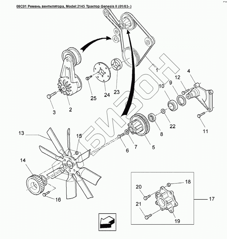 | 5 | 86545140 | Шкив вентилятора двигателя Od-193.6mm, 146/ 169/ 1 |
