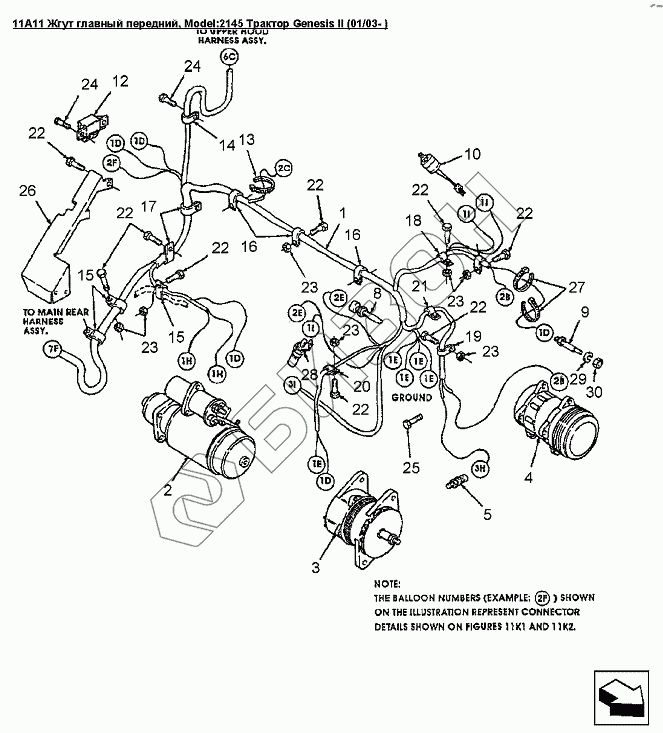 | 1 | 86029102 | Жгут передний основной, двигатель TIER II |