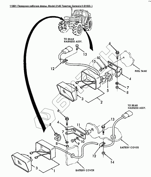 Графический каталог запасных частей к технике: Versatile серии GENESIS. 11B01 Передние рабочие фары