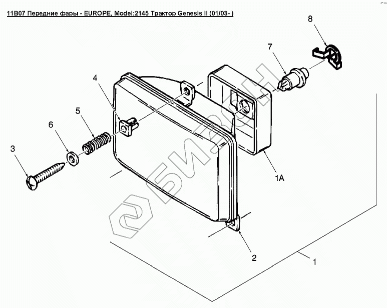 Графический каталог запасных частей к технике: Versatile серии GENESIS. 11B07 Передние фары - EUROPE