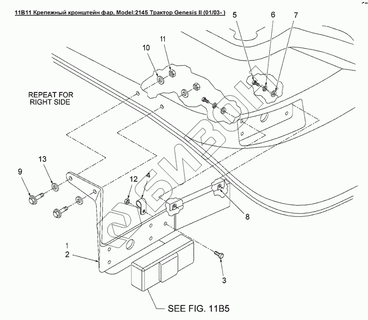 Графический каталог запасных частей к технике: Versatile серии GENESIS. 11B11 Крепежный кронштейн фар