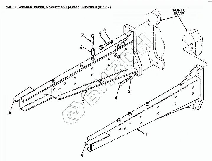 Графический каталог запасных частей к технике: Versatile серии GENESIS. 14C01 Боковые балки