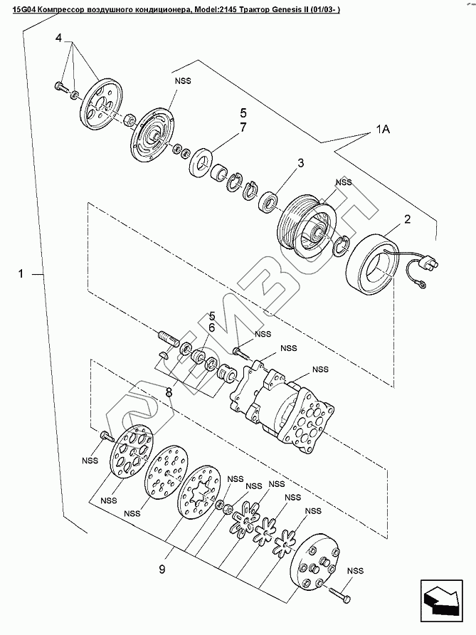Графический каталог запасных частей к технике: Versatile серии GENESIS. 15G04 Компрессор воздушного кондиционера