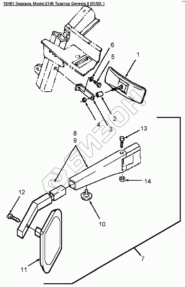 Графический каталог запасных частей к технике: Versatile серии GENESIS. 15H01 Зеркала