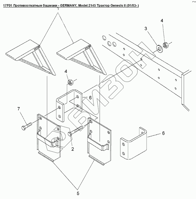 Графический каталог запасных частей к технике: Versatile серии GENESIS. 17F01 Противооткатные башмаки - GERMANY
