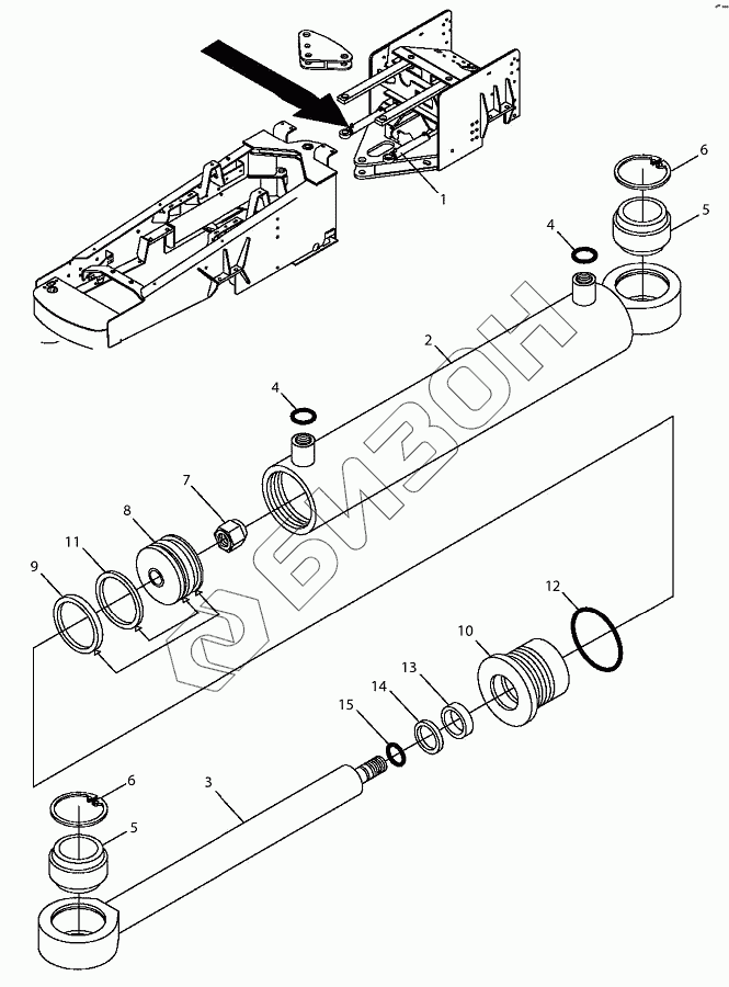 Графический каталог запасных частей к технике: Versatile серии HHT. 4STR02 Гидроцилиндр рулевой