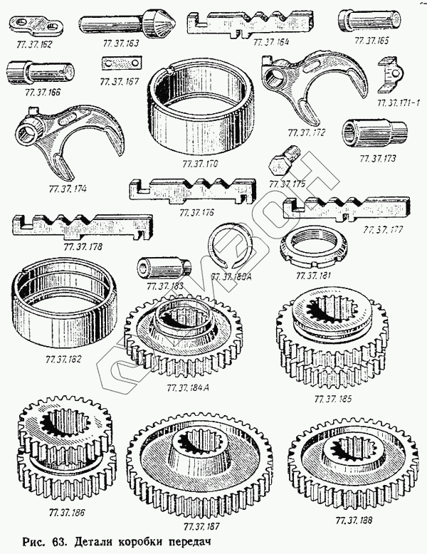 | 77.37.185 | 77.37.185 | Блок шестерен III и IV передач |