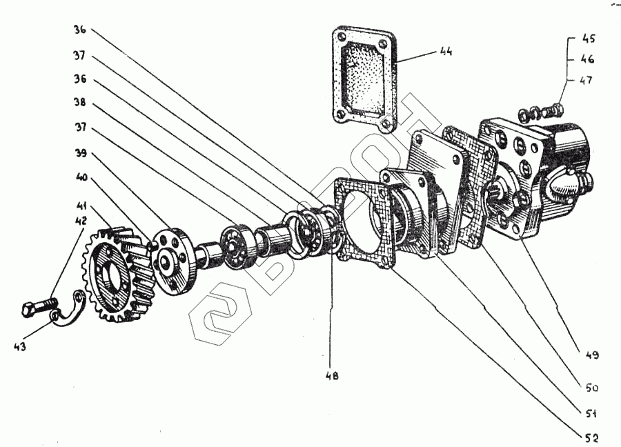| 30 | СМД7-2602-1 | Вал привода гидравлического насоса |