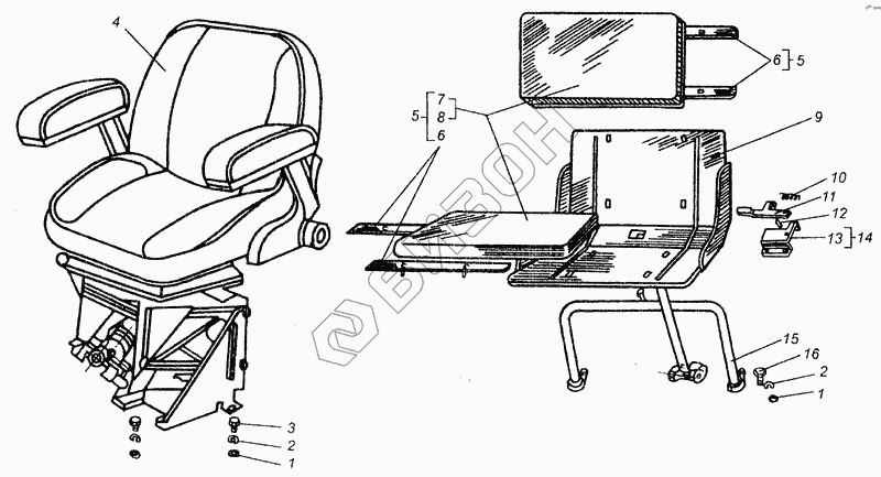 | 4 | А31.00.000-02 | Сиденье подрессоренное унифицированное |