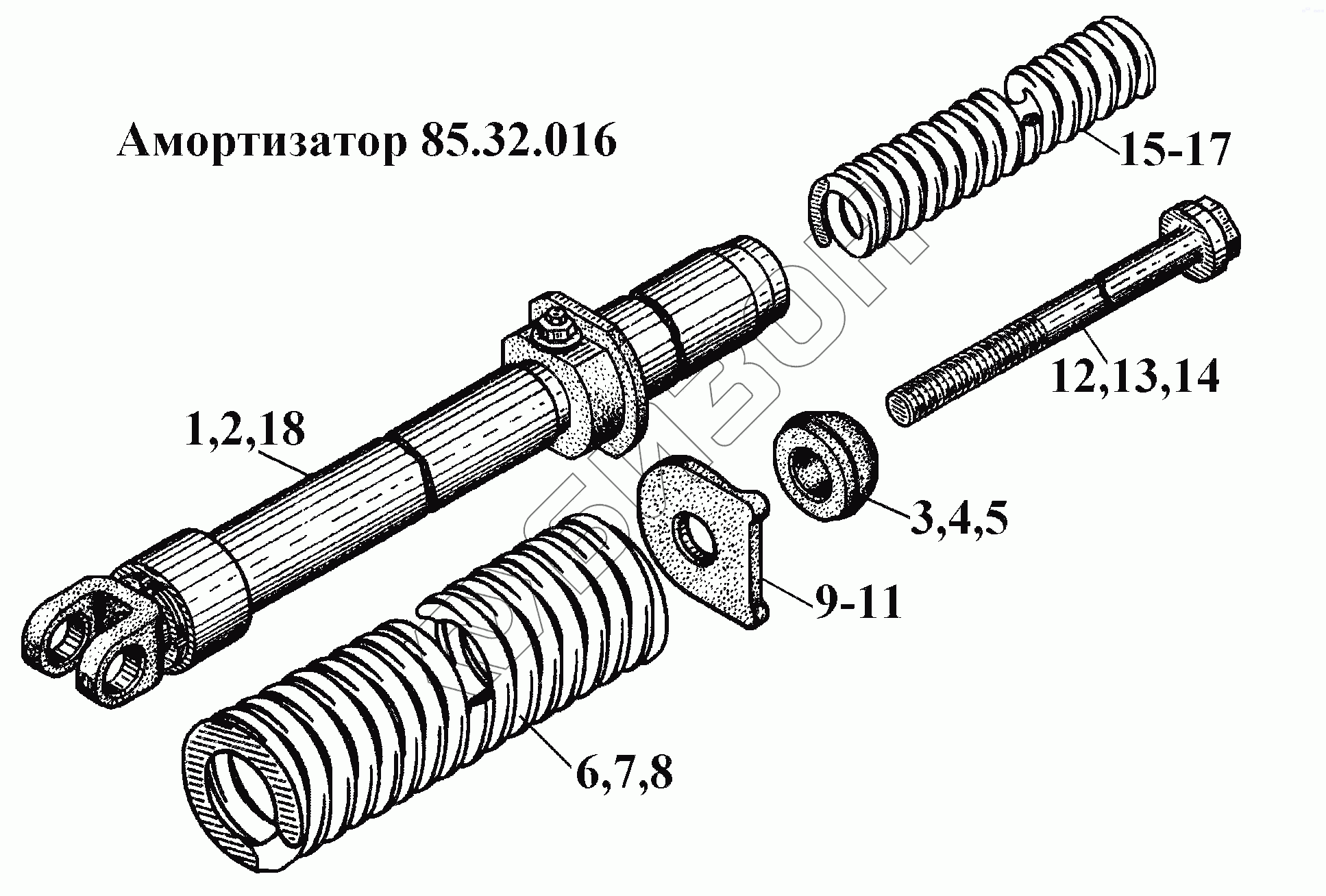 Графический каталог запасных частей к технике: ВгТЗ ВТ-100Д. Амортизатор 85.32.016