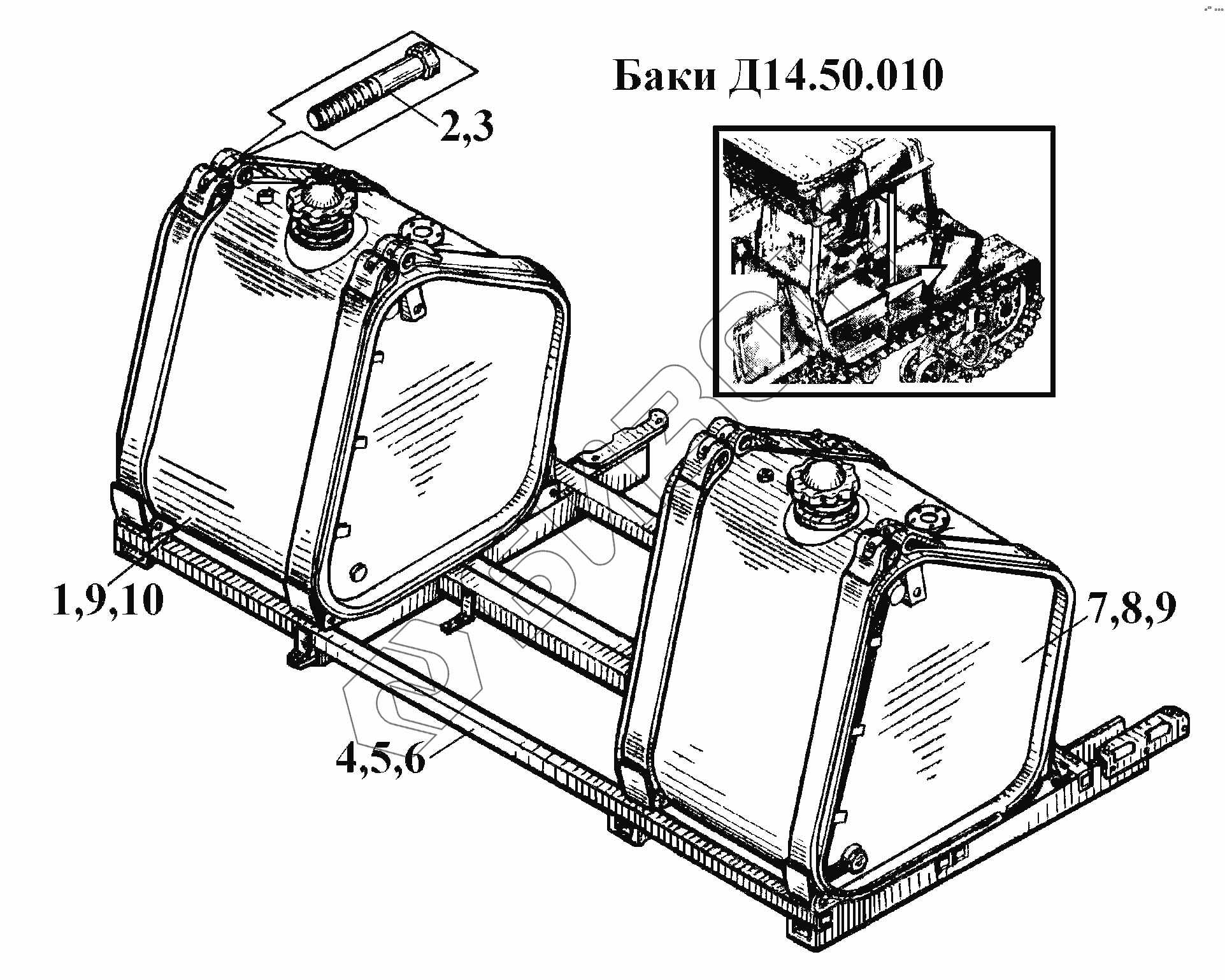 Графический каталог запасных частей к технике: ВгТЗ ВТ-100Д. Баки Д14.50.010 (1)