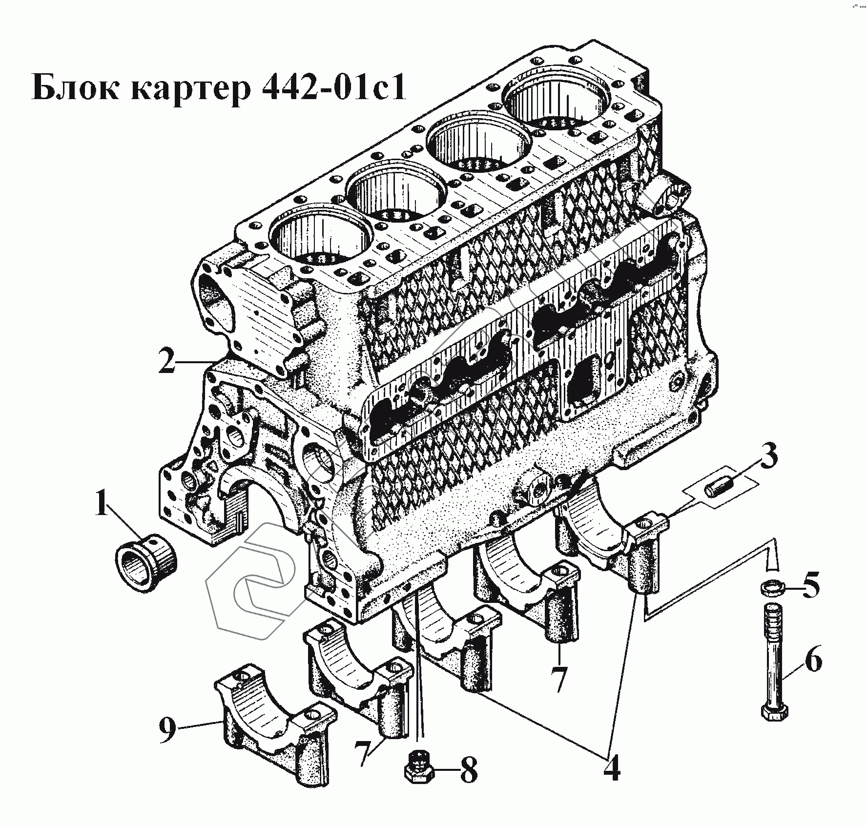 Графический каталог запасных частей к технике: ВгТЗ ВТ-100Д. Блок картер 442-01с1 (4)
