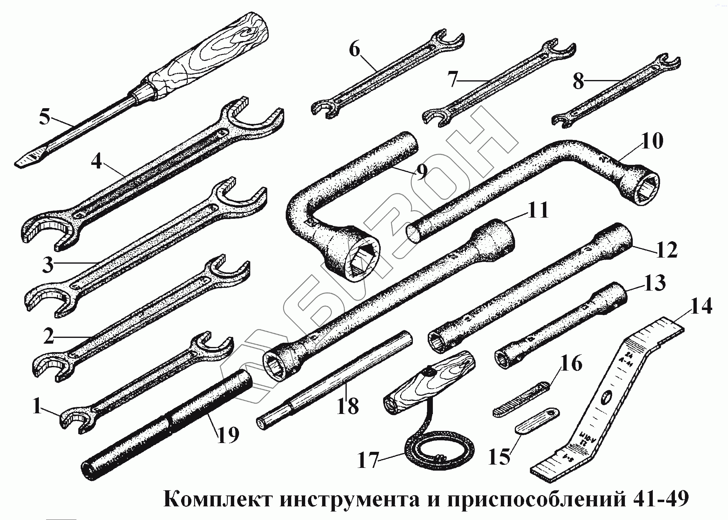 Графический каталог запасных частей к технике: ВгТЗ ВТ-100Д. Комплект инструмента и приспособлений 41-49