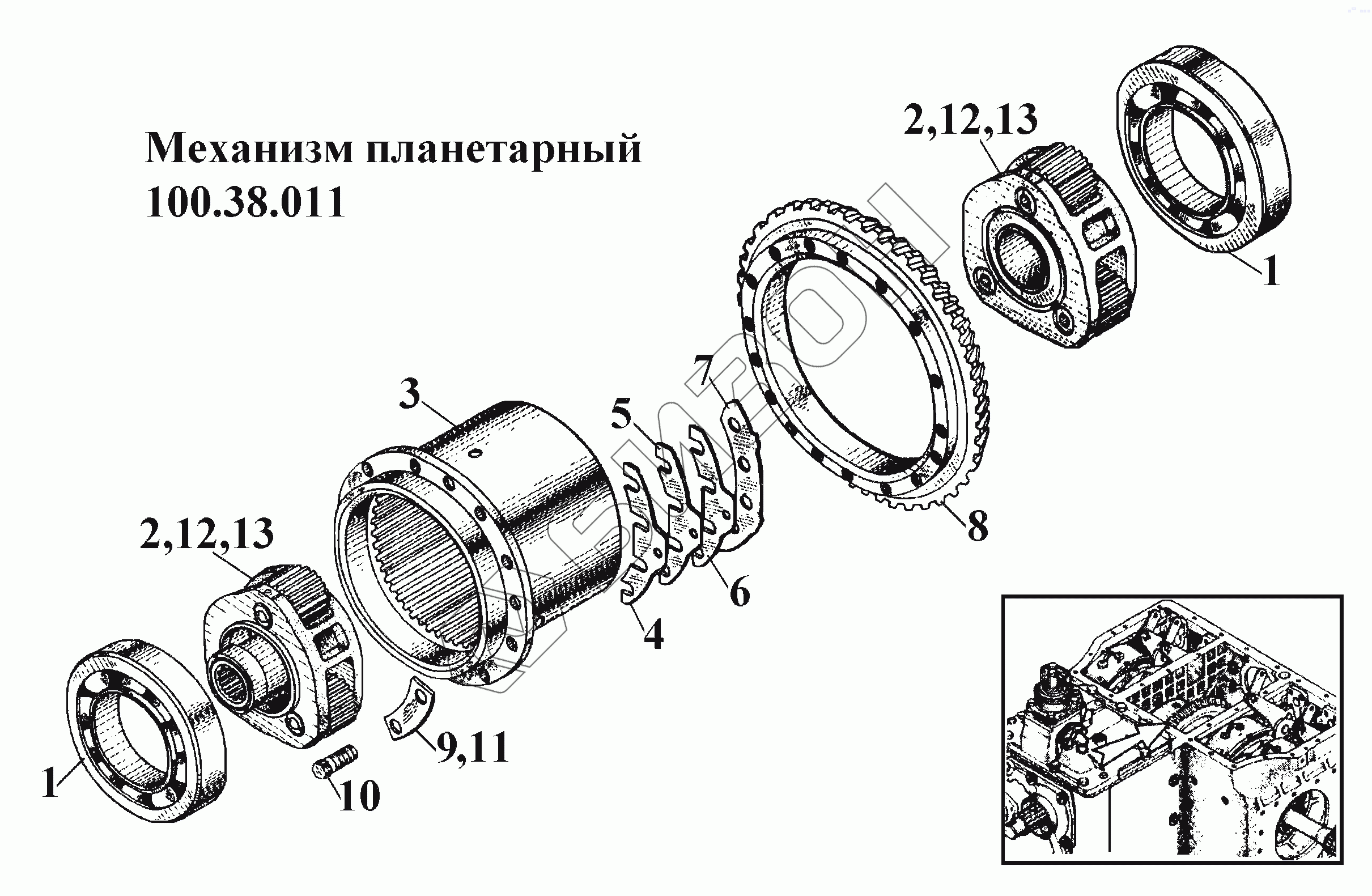 Графический каталог запасных частей к технике: ВгТЗ ВТ-100Д. Механизм планетарный 100.38.011