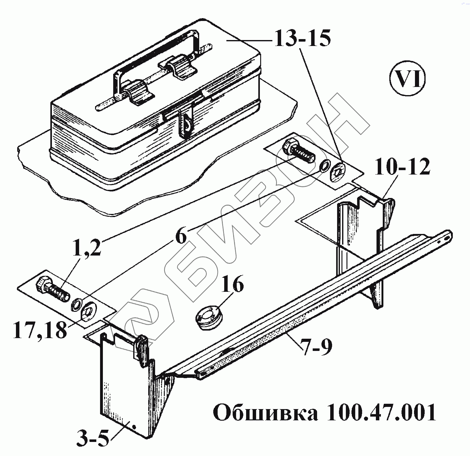 Графический каталог запасных частей к технике: ВгТЗ ВТ-100Д. Обшивка 100.47.001 (7)