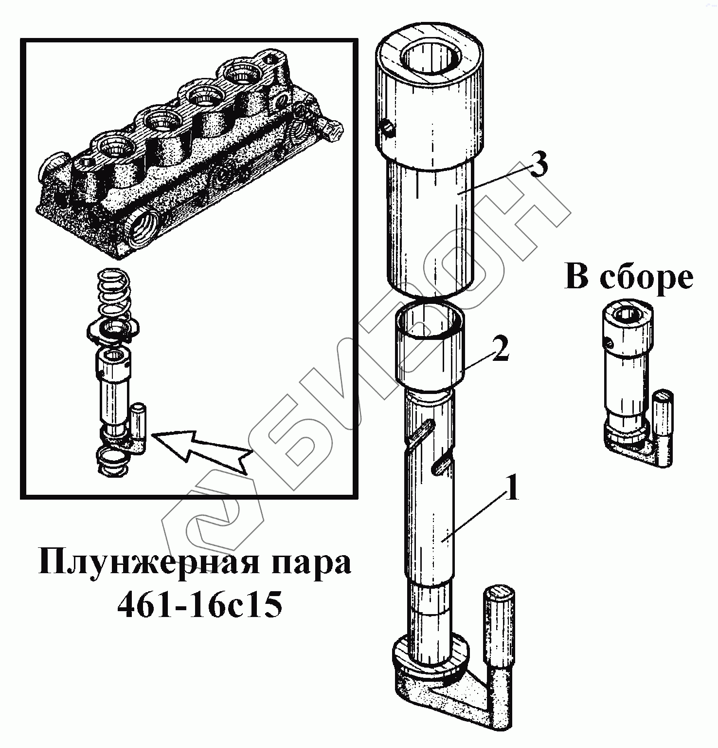 Графический каталог запасных частей к технике: ВгТЗ ВТ-100Д. Плунжерная пара 461-16с15