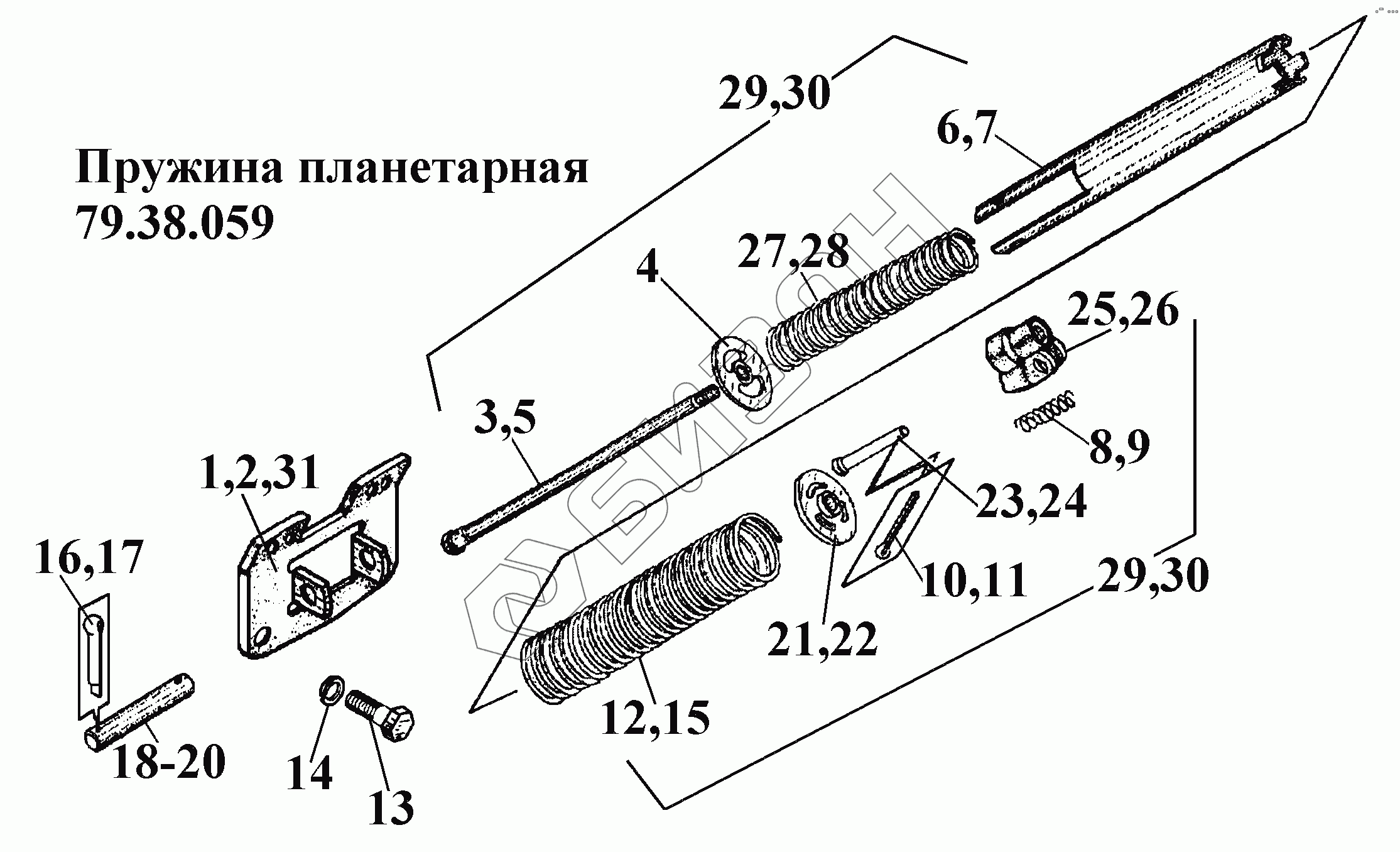 | 30 | 79.38.062-20 | Пружина планетарного тормоза |