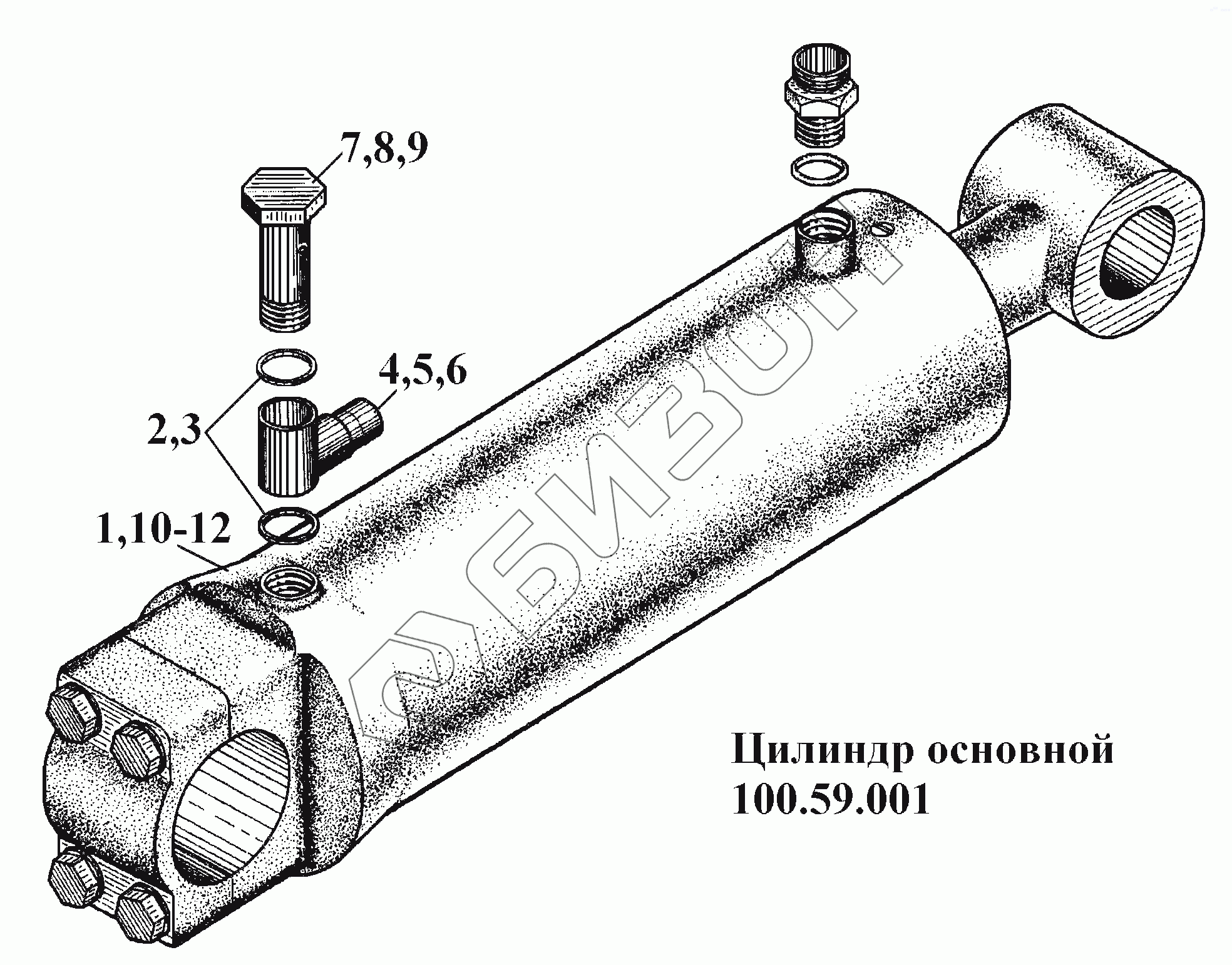 Графический каталог запасных частей к технике: ВгТЗ ВТ-100Д. Цилиндр основной 100.59.001