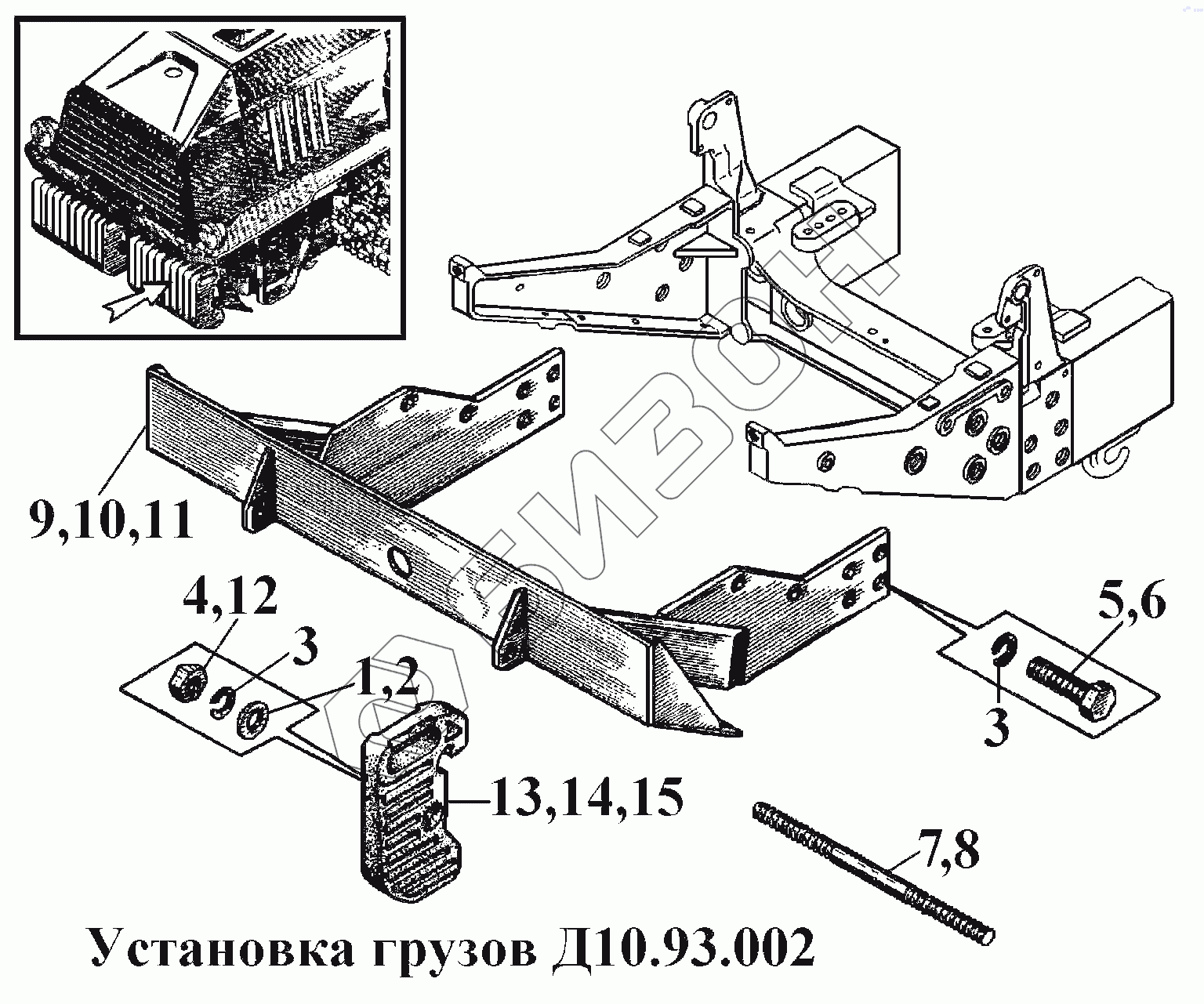 Графический каталог запасных частей к технике: ВгТЗ ВТ-100Д. Установка грузов Д10.93.002