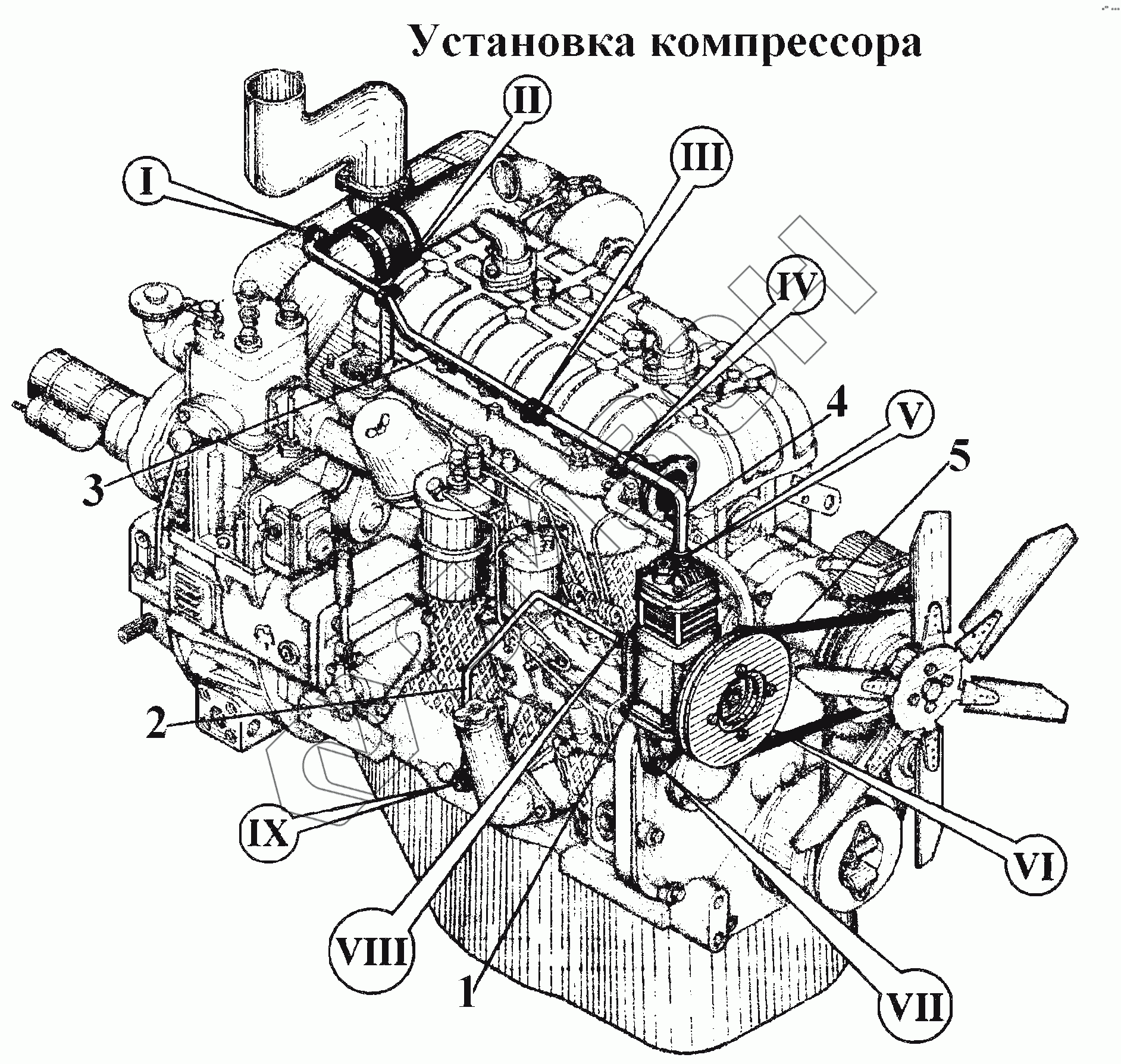 Графический каталог запасных частей к технике: ВгТЗ ВТ-100Д. Установка компрессора