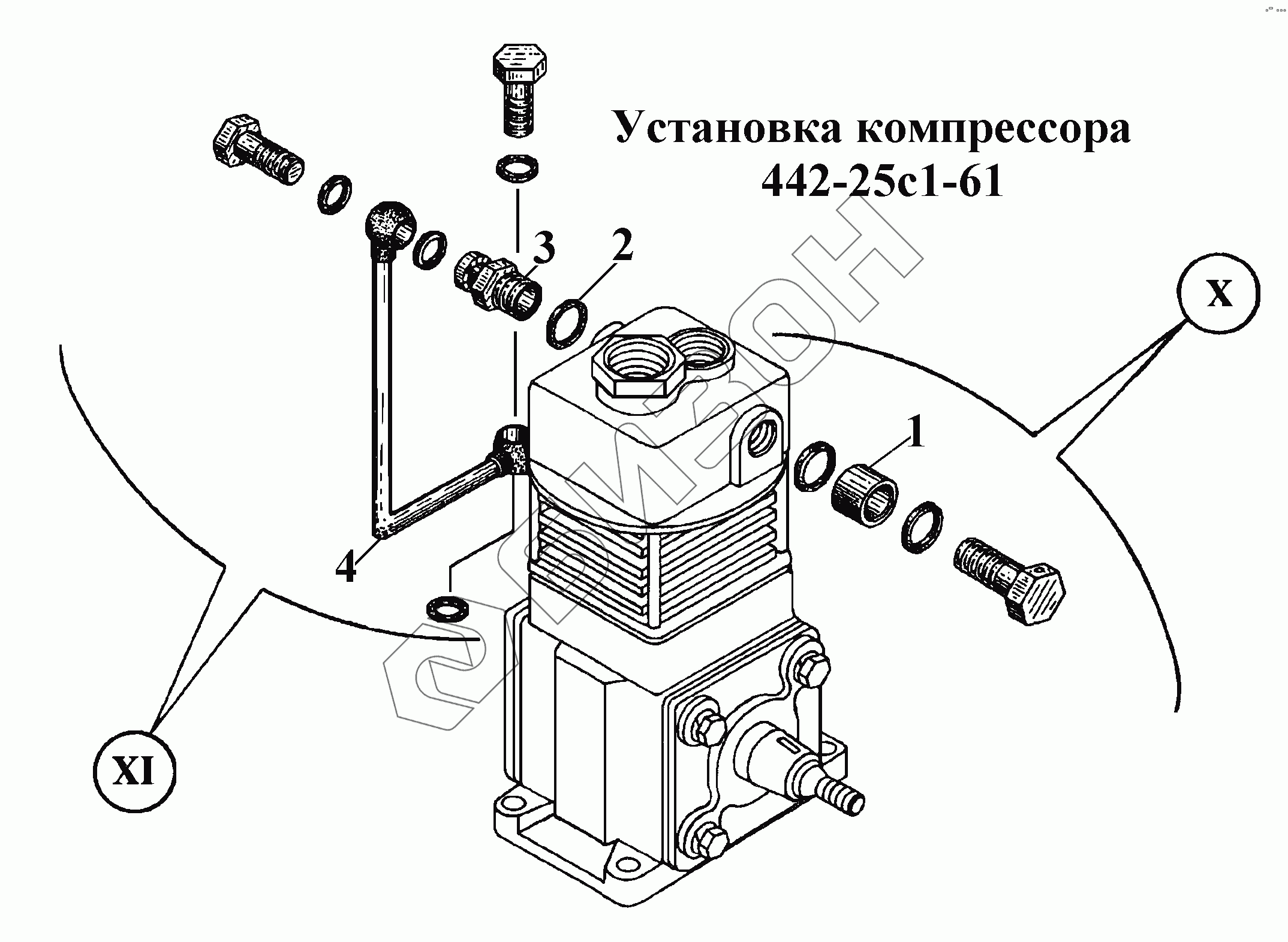 Графический каталог запасных частей к технике: ВгТЗ ВТ-100Д. Установка компрессора 442-25с1-61