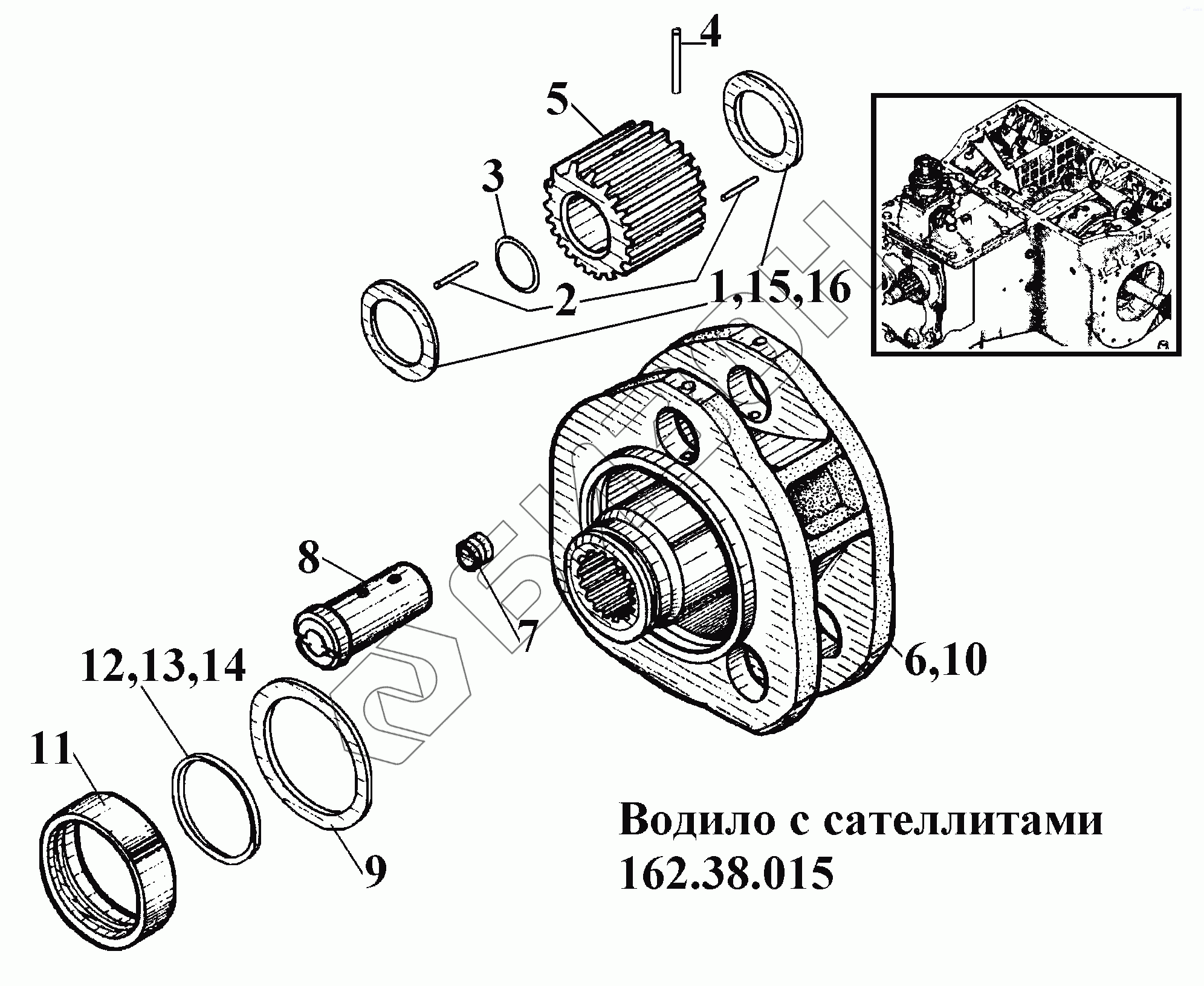 Графический каталог запасных частей к технике: ВгТЗ ВТ-100Д. Водило с сателлитами 162.38.015