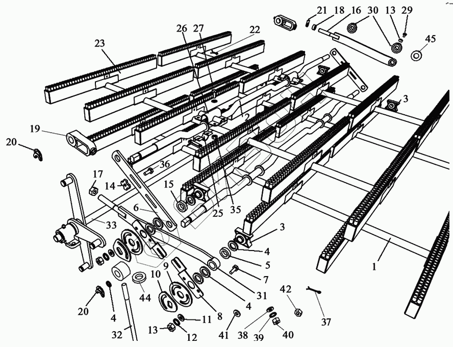 Графический каталог запасных частей к технике: Воронежсельмаш ЗВС-20А. Механизма очистки решет верхнего стана