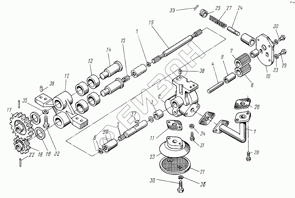 | 19 | Д08-028-А | Валик привода насоса |