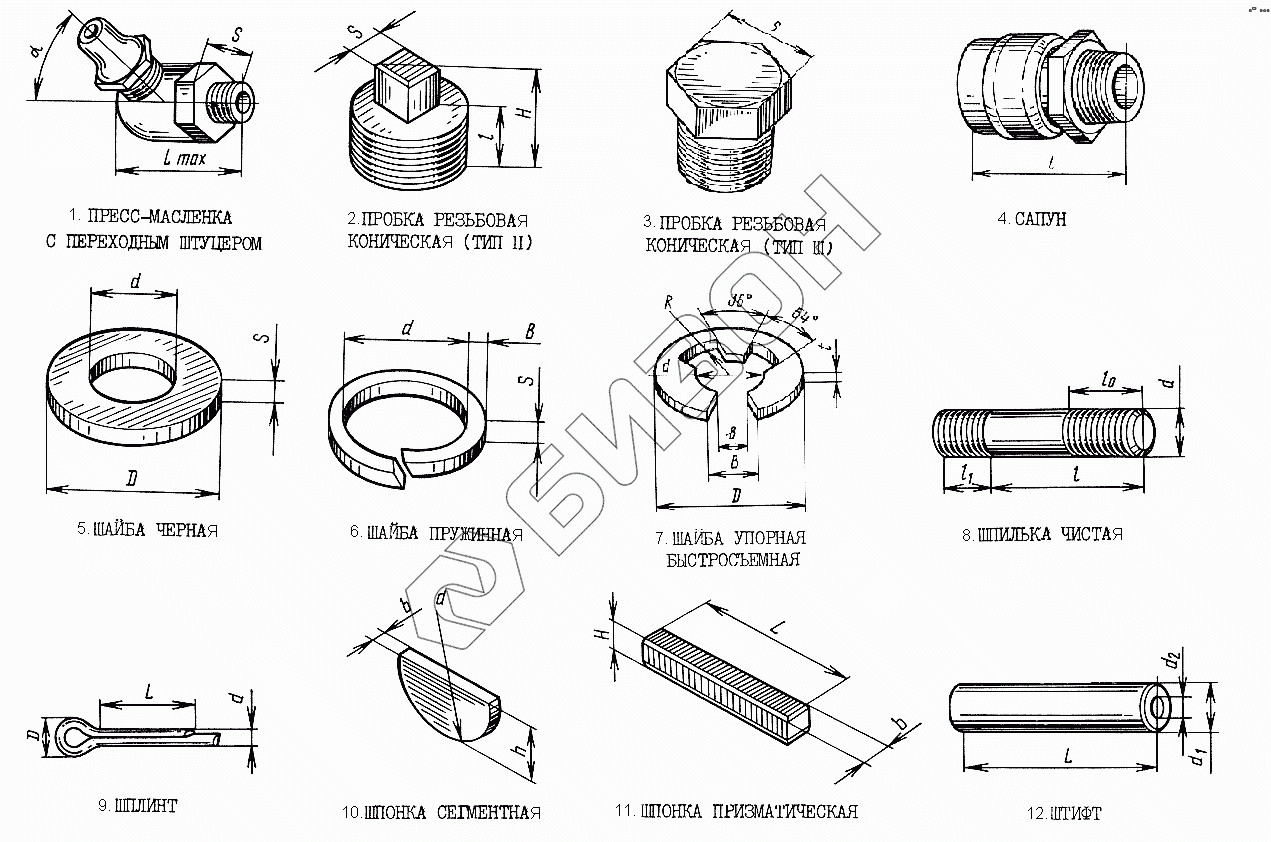 | 2 | 2КГ 3/8" С 20 086 | Пробка резьбовая коническая (тип 2) (S=12, H=20, l=12) |