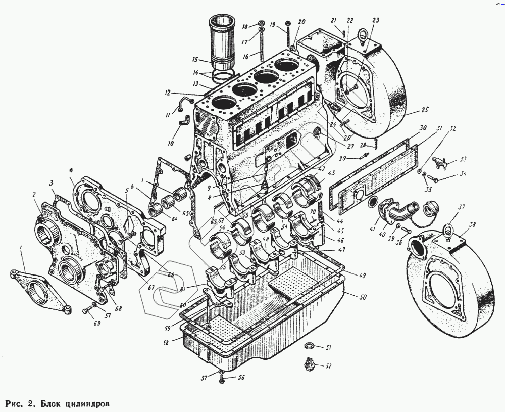 | 2 | Д65-01-С02 СБ | Крышка распределительных шестерен передняя в сборе |
