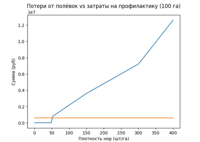 - После 150 нор/га профилактика становится экономически оправданной с большим запасом.