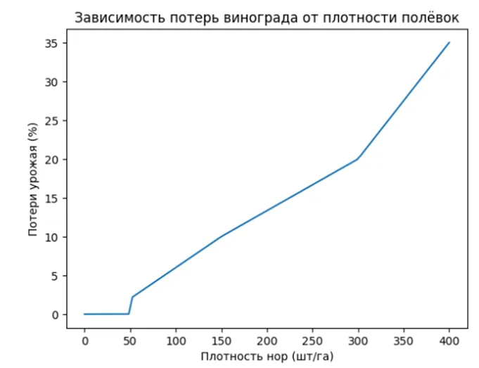 - После 100–150 нор/га начинается резкий рост потерь.