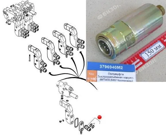 Полумуфта БРС наружн. секции гидрораспределителя (MT700C/D/E,800C,900C Челленжер)