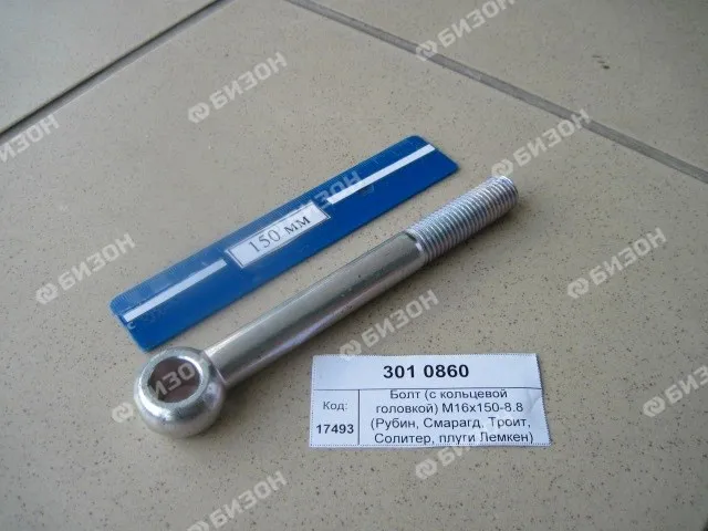 Болт (с кольцевой головкой) М16х150-8.8 (Рубин, Смарагд, Торит, Солитер, плуги Лемкен)
