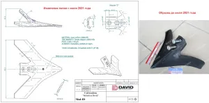 Нож подрезной 550 мм правый комплект (нож, пруток, болт) (ID David) 00028505D