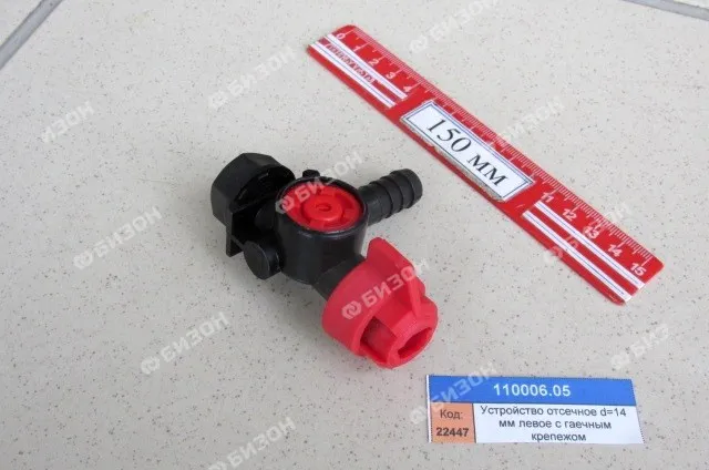 Устройство отсечное (d=14 мм) левое с гаечным крепежом под шланг (110006.10)