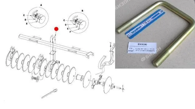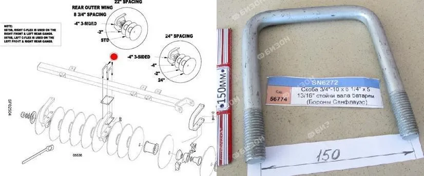Скоба П-образная 3/4"-10 х 4¼" х 3⅜" крепл. стойки раб. орг. (4511 Disk Chisel)