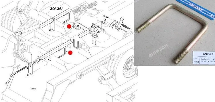 Скоба П-образная 3/4"-10 х 6¼" х 5 13/16" стойки вала батареи (1234,1544 Санфлауэр)