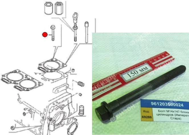 Болт М14х147-10.9 блока цилиндров (Император Стара)(MWM) S7923-4031 / 020.063
